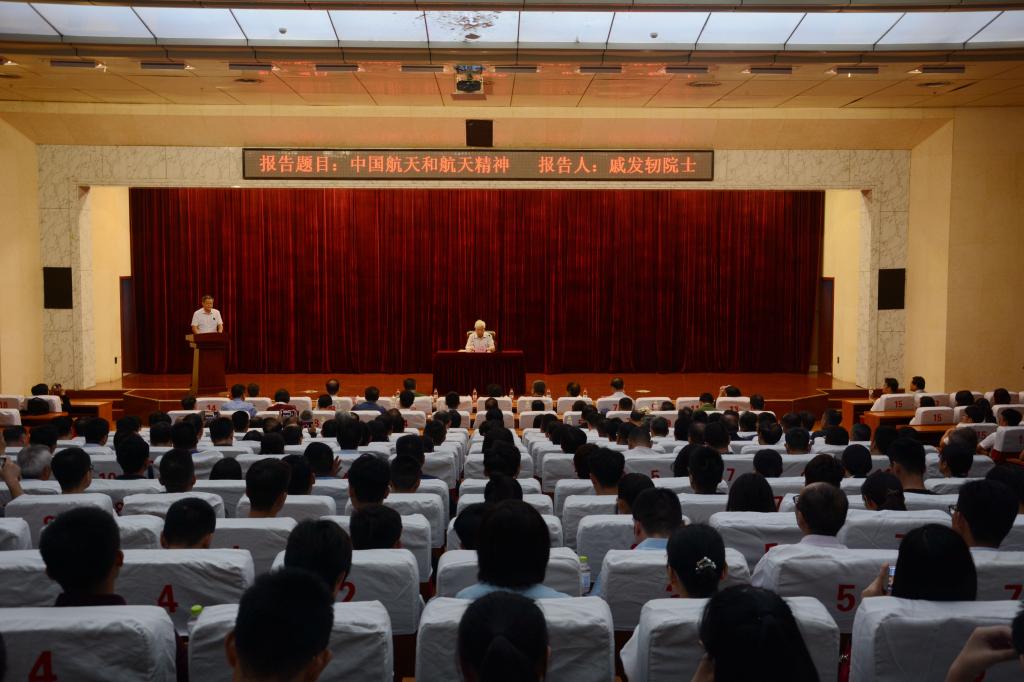 本次报告会邀请到了空间技术专家,神舟号飞船首任总设计师,中国工程院院士,国际宇航科学院院士,中国空间技术研究院技术顾问戚发轫院士。报告会上,戚发轫做了“中国航天和航天精神”主题报告,他对航天的基本概念进行了解释,深情地回顾了从“两弹一星”到“载人航天”再到“探月工程”的中国航天发展奋斗史,用鲜活的事例阐述了“自力更生、艰苦奋斗、大力协同、无私奉献、严谨务实、勇于攀登”的航天精神,“热爱祖国、无私奉献、自力更生、艰苦奋斗、大力协同,勇于登攀”的“两弹一星”精神和“特别能吃苦、特别能战斗、特别能攻关、特别能奉献”的载人航天精神。他深情地讲到,一代又一代航天人把个人的理想与祖国的命运,把个人的志向与民族的振兴联系一起,用生命和热血阐释了中国航天人在奋斗中展现出的高尚爱国主义精神。现场师生深受感动。